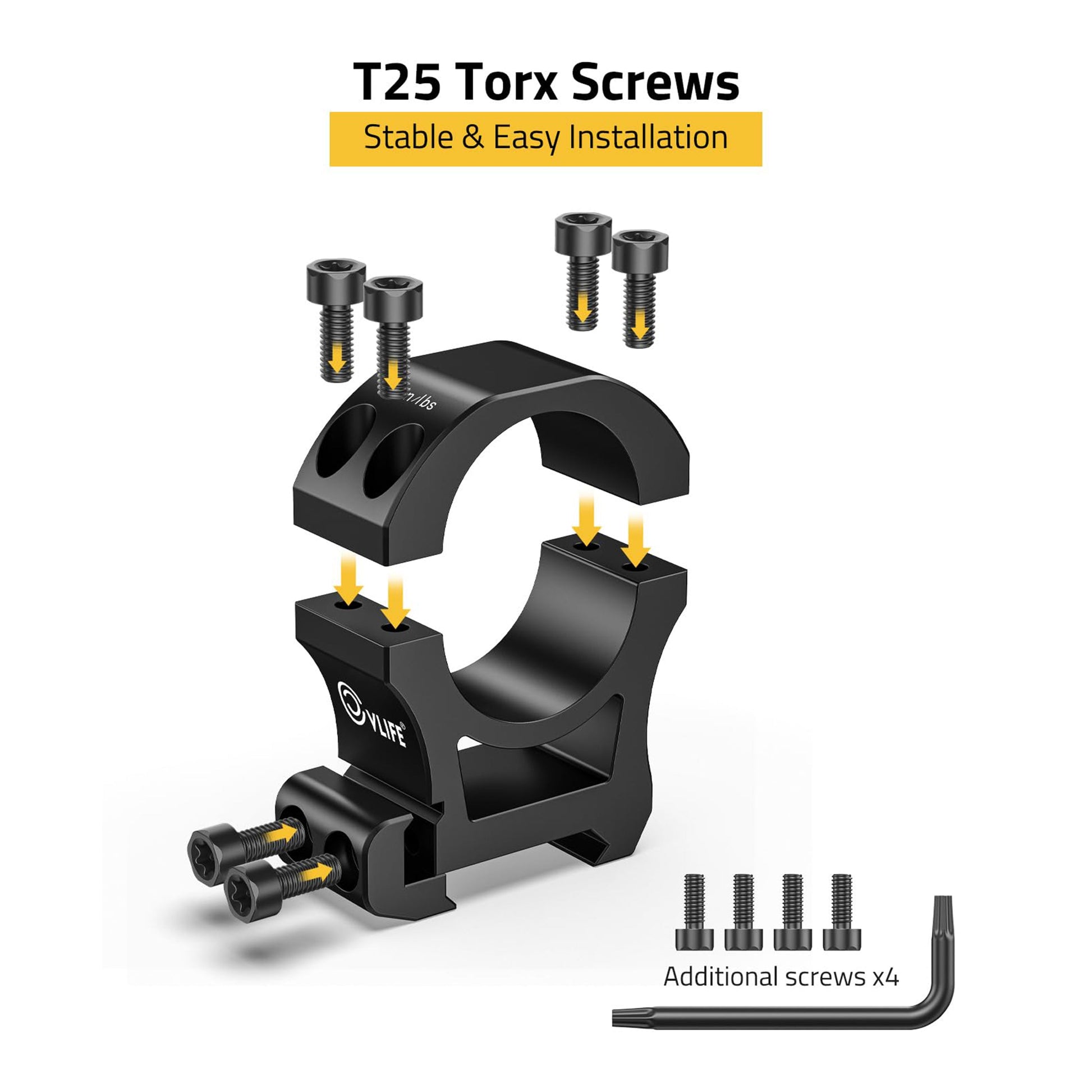 Torx Screws Easy Accurate Mounting: Stainless steel hardware ensures fast and secure tightening while protecting the screws from stripping. CVLIFE recommends a maximum torque setting of no more than 18 in/lbs for ring screws and 30 in/lbs for base screws